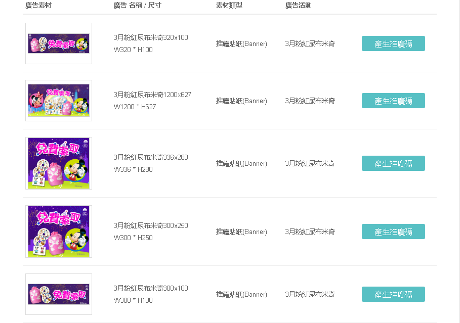 舉例:我選第三個,點擊後面的「產生推廣碼」如下: